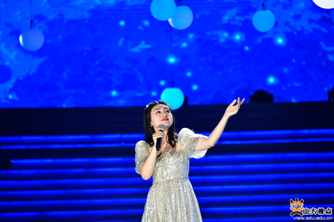 An actress sings the song "I'm Here to Count the Stars". [Photo/sdu.edu.cn]
