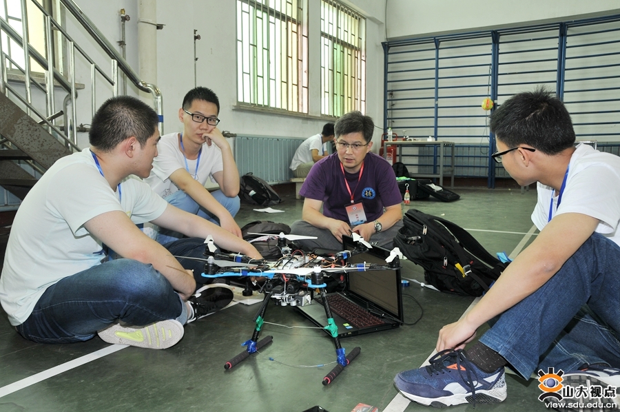 2016年9月,九游会·(J9)官方网站青岛校区举办开学典礼暨校区全面启用仪式,受学校委托,洪新伟所在的无人机团队需要在典礼仪式上操作9架无人机,由无人机编队并拉条幅,彰显学校风姿。面对这份沉甸甸的责任,洪新伟和秦峰、牟琳两位老师带领无人机团队23名学生踏上了去青岛校区训练的征途。